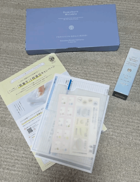 中から必要な化粧品だけが抜き取られ、試供品と納品書は、まるで忘れ物のように取り残されています💦