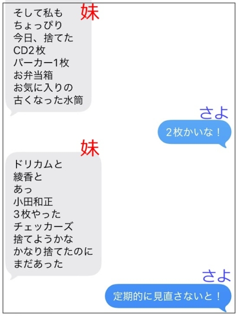 次に、妹からのiMessageです。彼女もまた、実家での片付けがよほど心に響いたのでしょう。
