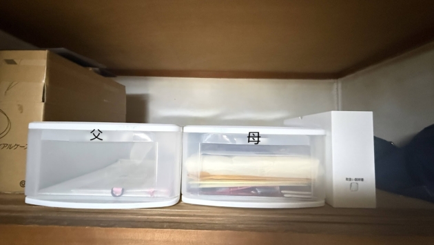 そして、この引き出しには、母の死に装束にする大島紬も。(これは私が入れました)モノの整理と同時に、母の想いや、家族の歴史に触れる瞬間でもあります。