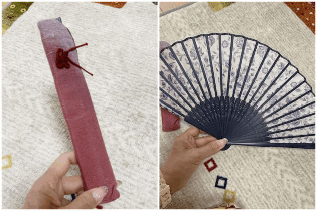 私がプレゼントしたらしい扇子。(渡した本人が忘れている)布のケースは日焼けで変色していて、みすぼらしいので、処分するように促しましたが、絶対嫌だと…