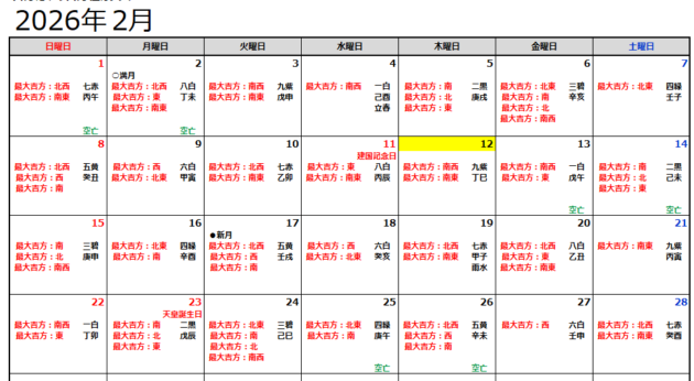 (六曜、暦、空亡入り最強オリジナルカレンダー)